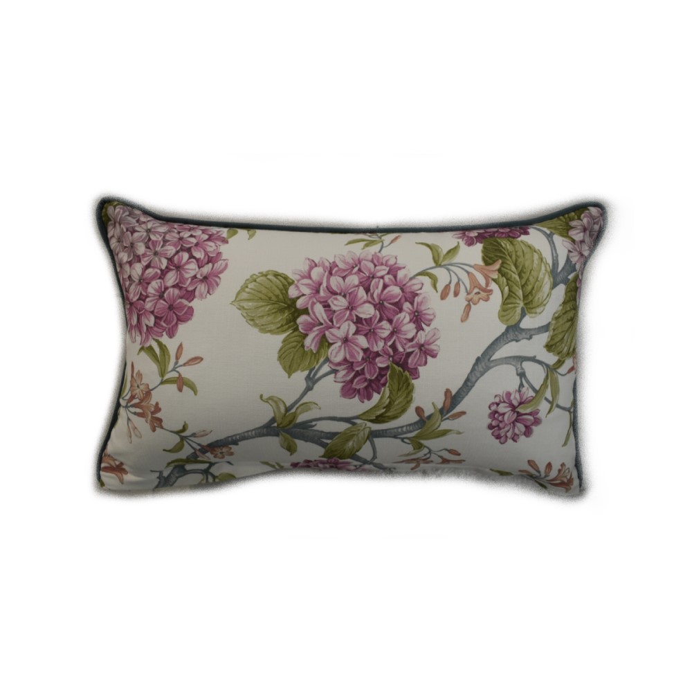Habitat sklademDekorační povlak na polštářek se záplavou květů hortenzií a lilií na smetanovém podkladu.