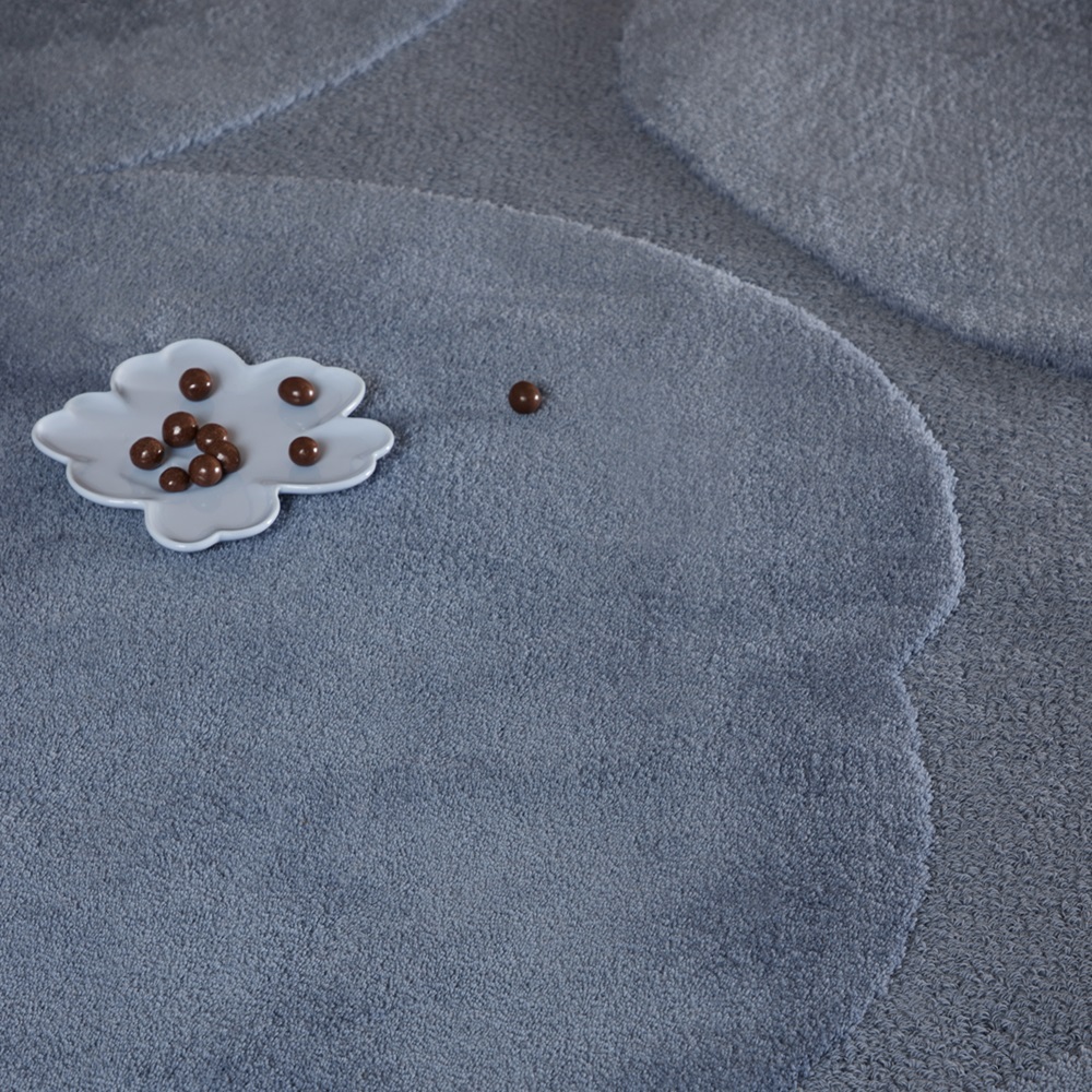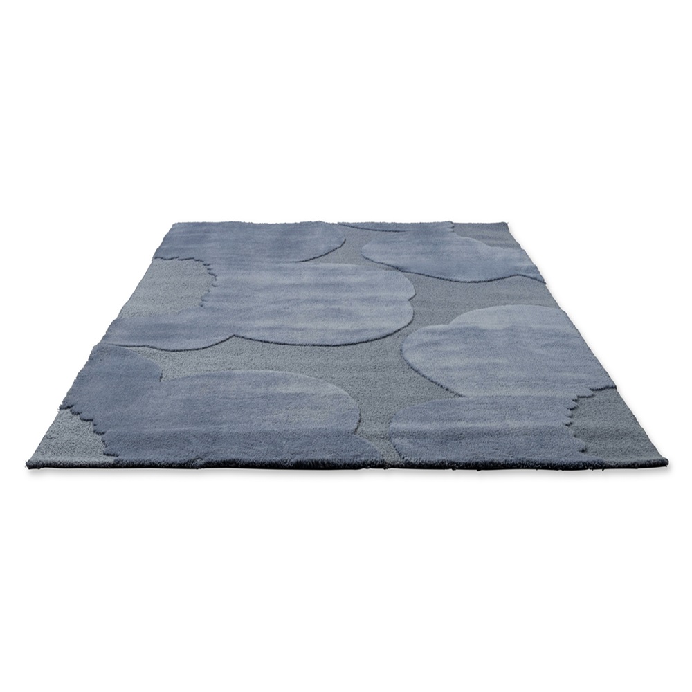 Luxusní vlněný koberec od finské značky Marimekko Unikko Dusty blue - výrobce Brink&Campman s plastickým květinovým vzorem.