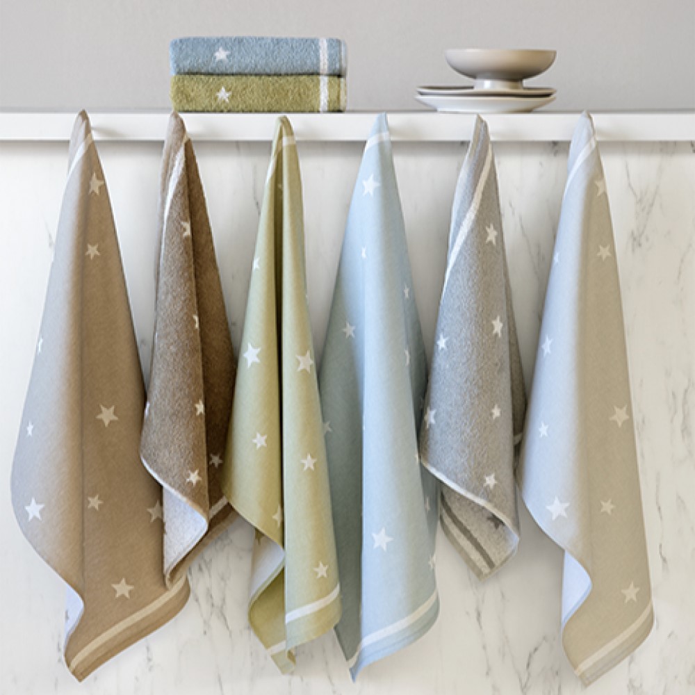Lasa skladem novinkaBavlněná utěrka Astra značky Lasa s hvězdičkami v zelené barvě, s praktickým poutkem na zavěšení.