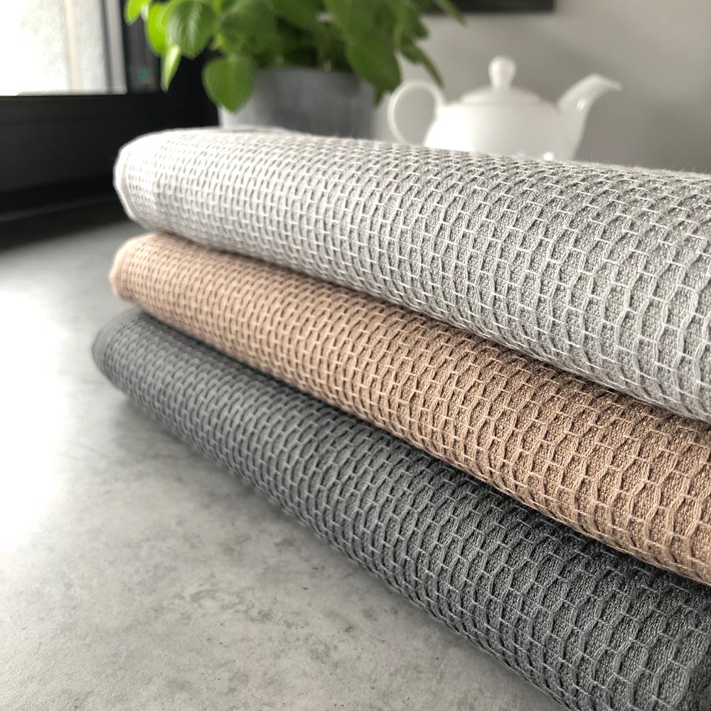 Lasa sklademJednobarevná bavlněná utěrka Pure s geometrickým reliéfem značky Lasa v šedé barvě a s praktickým poutkem na zavěšení.