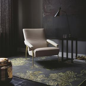 Černý koberec Wedgwood Tonquin s motivem zlatých, exotických květin.