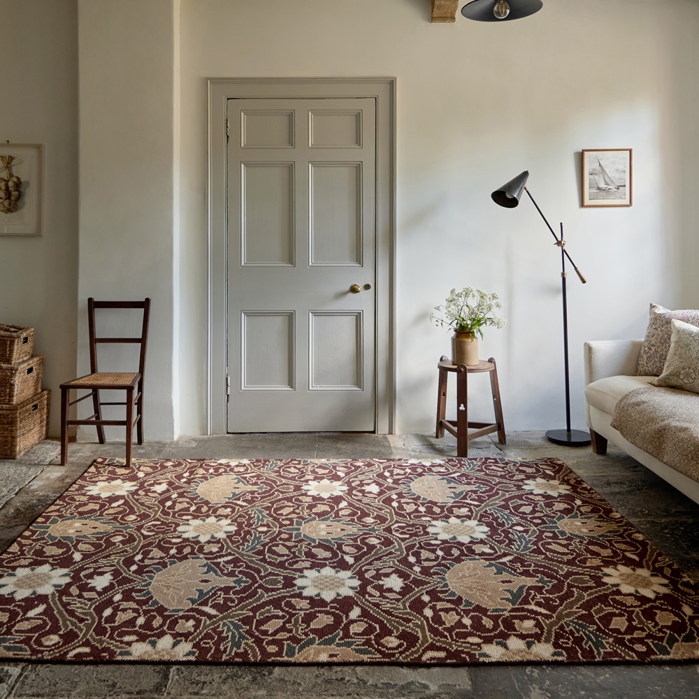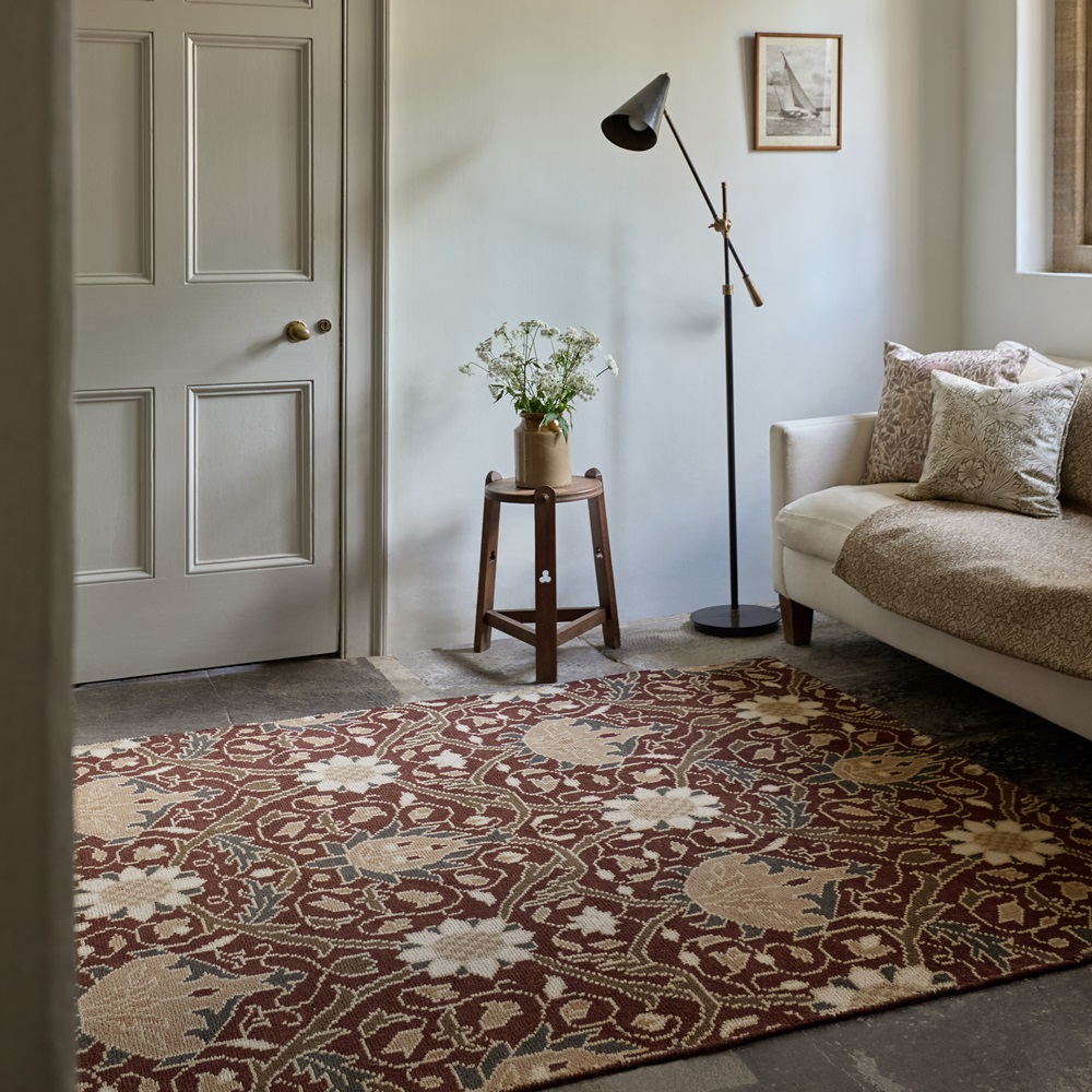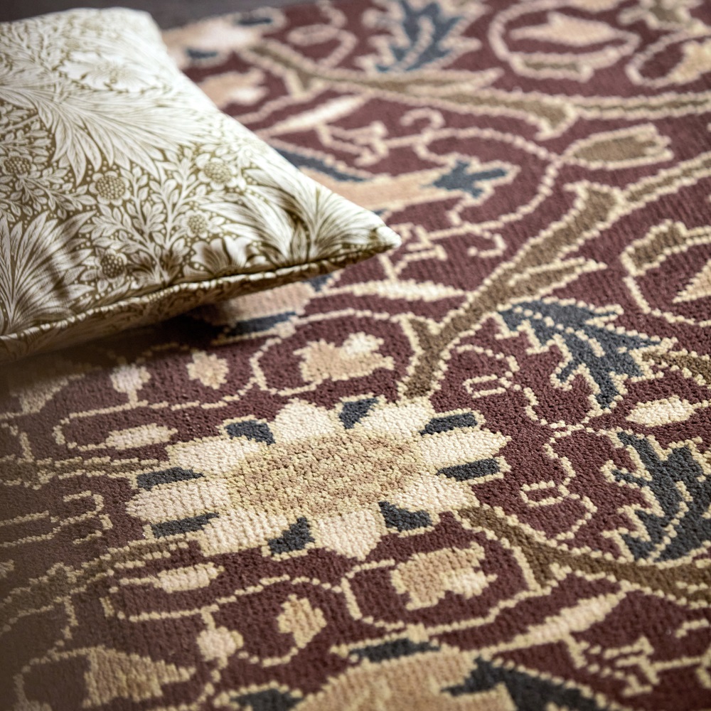 Barevný kusový koberec Morris & Co - Montreal Russet, tzv. "buklák". Pestrý koberec, s bohatým vzorem květin s nádechem orientu.