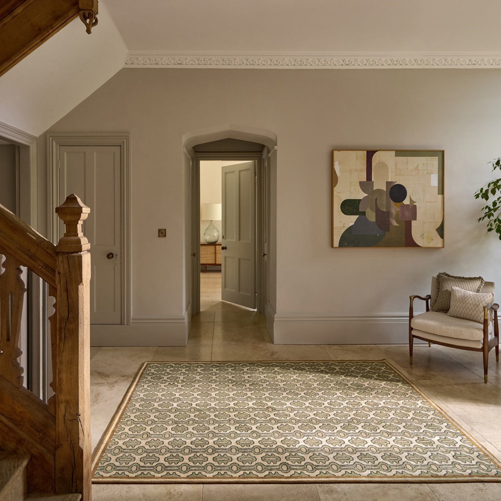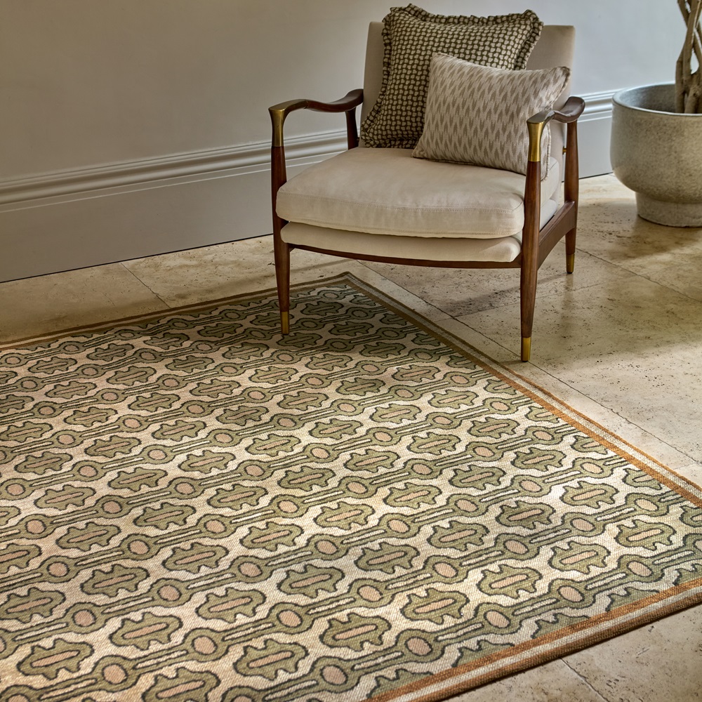 Moderní koberec Sanderson Matmi avocado s jednoduchým, celoplošným vzorem.