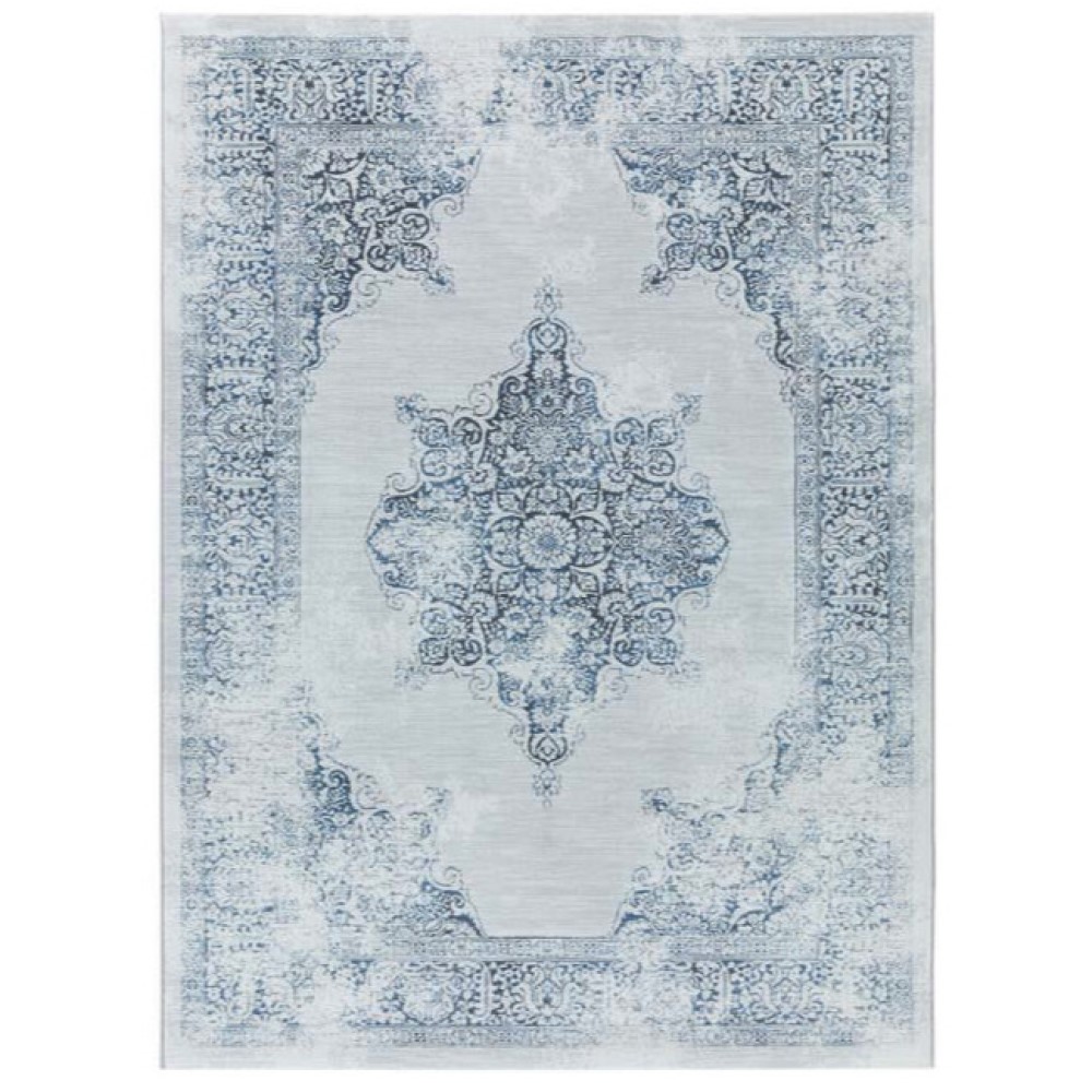 Perský kusový koberec Paizzo ve smetanové barvě, s celoplošným vzorem v modré barvě.