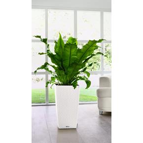 Vysoký ratanový květináč Lechuza cubico cottage se zavlažovacím systémem v bílé barvě.