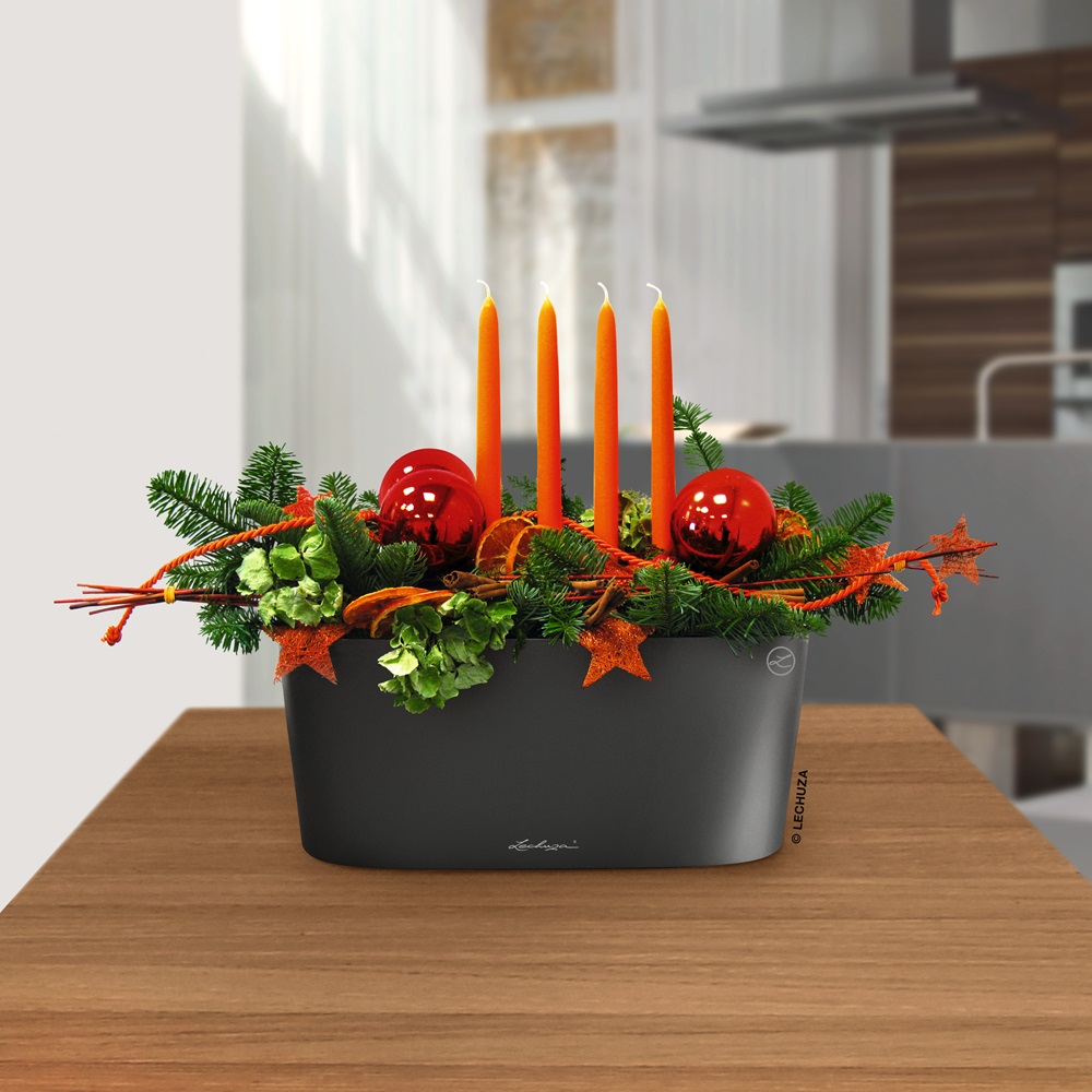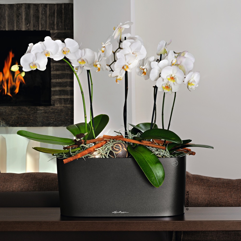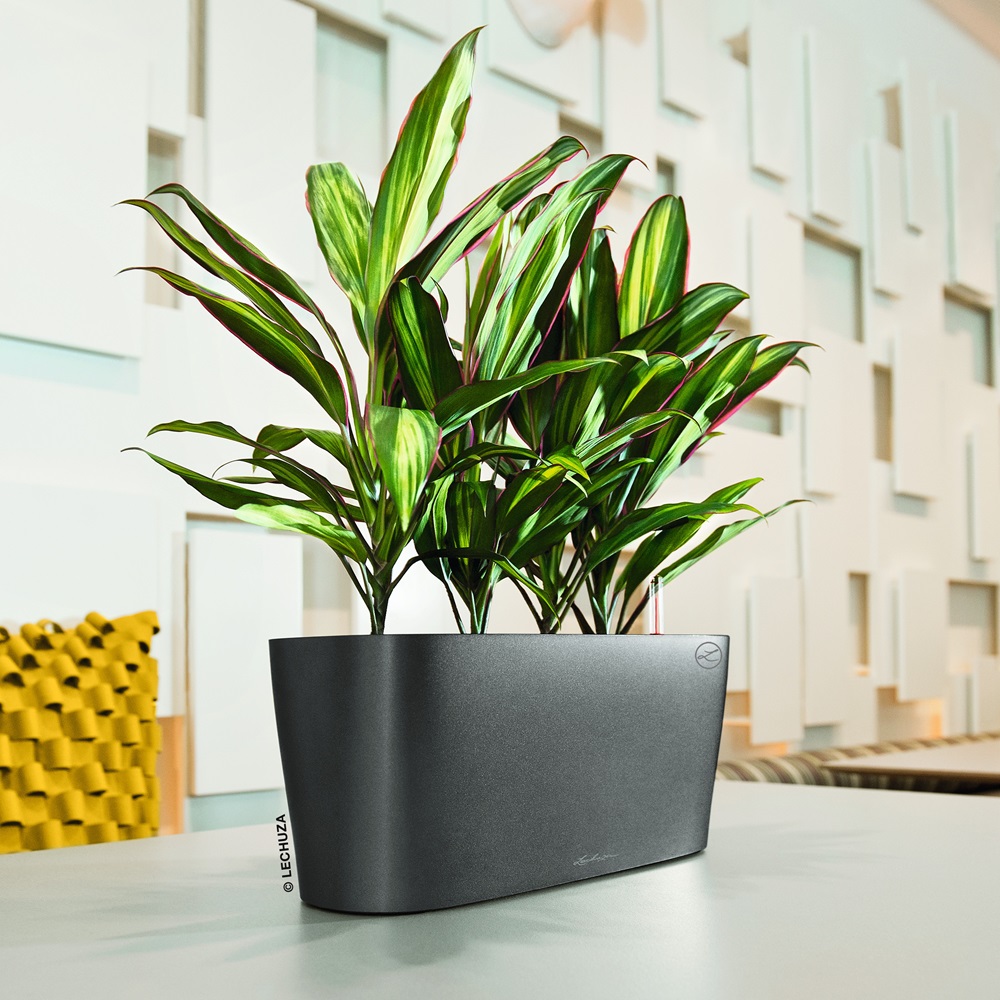 Samozavlažovací antracitový květináč LECHUZA delta 20 - elegantní oválný stolní květináč pro osázení 2 - 3 rostlinami. Květináče velmi dobře vyniknou na parapetech a poličkách. Vhodný též pro pěstování bylin. Své místo si najde pří vytváření kouzelných vánočních dekorací. Stabilní umělá hmota odolná proti nárazu a UV záření (ušlechtilý keramický a kovově efektní lesk je neměnný po mnoho let). Květináč obsahuje hlavní nádobu, vyjímatelný box pro osázení rostlin oddělující substrát od zásoby vody. Souprava obsahuje rovněž zeolitový granulát, který se před osazením rostliny rozprostře na vloženou přepážku a umožňuje snadnější prokořenění rostliny do vodní lázně.