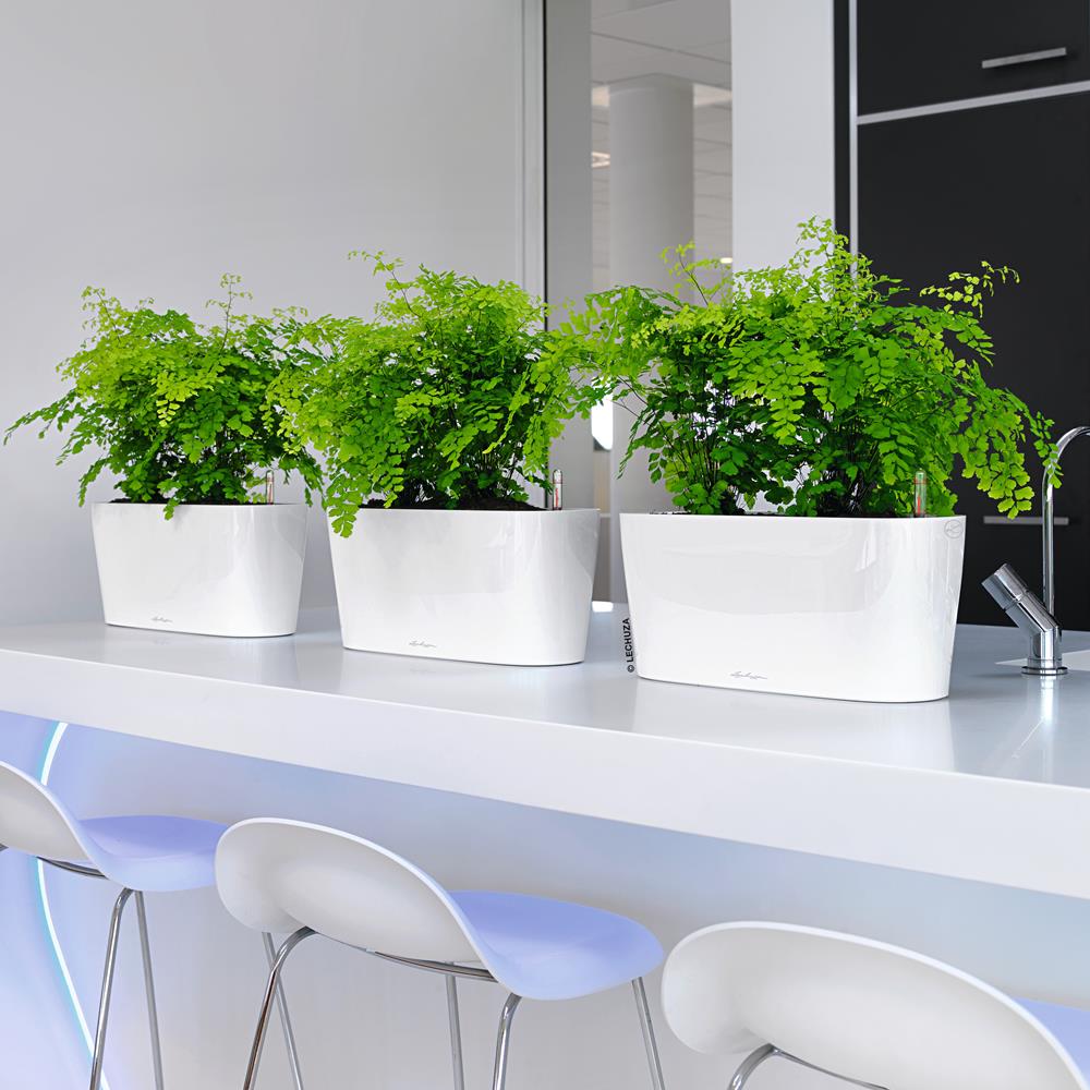 Lechuza sklademSamozavlažovací květináč LECHUZA delta 20 v bílé barvě - elegantní oválný stolní květináč pro osázení 2 - 3 rostlinami. Květináče velmi dobře vyniknou na parapetech a poličkách. Vhodný též pro pěstování bylin. Stabilní umělá hmota odolná proti nárazu a UV záření (ušlechtilý keramický a kovově efektní lesk je neměnný po mnoho let). Květináč obsahuje hlavní nádobu, vyjímatelný box pro osázení rostlin oddělující substrát od zásoby vody. Souprava obsahuje rovněž zeolitový granulát, který se před osazením rostliny rozprostře na vloženou přepážku a umožňuje snadnější prokořenění rostliny do vodní lázně.