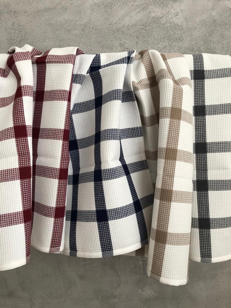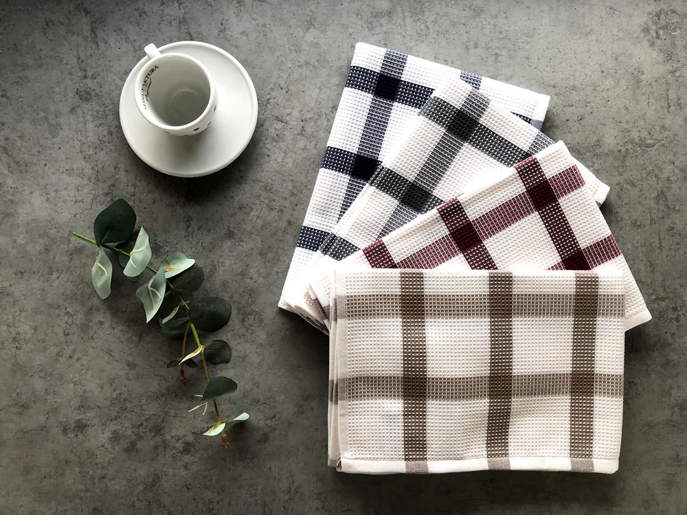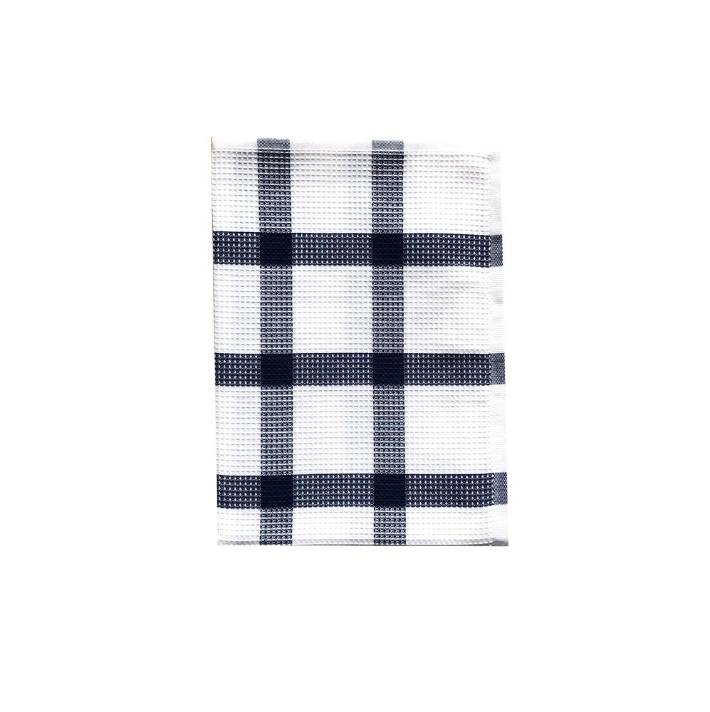Lasa sklademKvalitní kostkovaná bavlněná utěrka na nádobí v bílo modré kombinaci s takzvanou vafličkovou strukturou. Utěrka má praktické poutko na zavěšení.