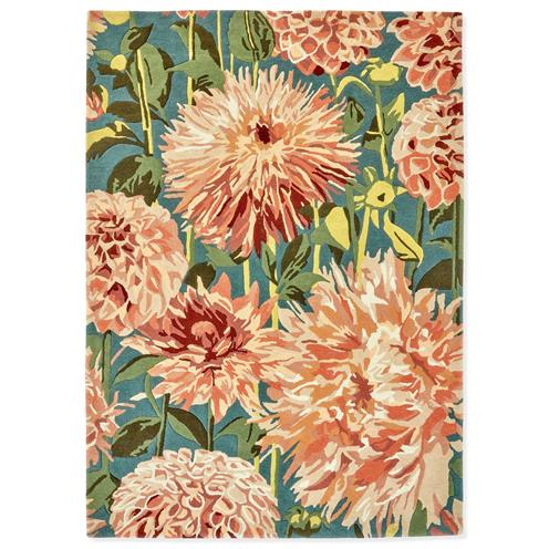 Designový vlněný koberec Harlequin Dahlia Coral s nádherným květinovým vzorem pivoněk v oranžové barvě.