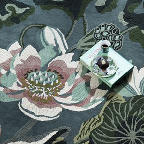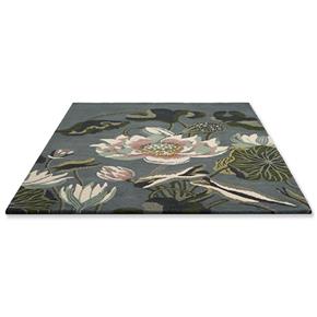 Vlněný koberec Wedgwood Waterlily motivem leknínů na vodní hladině.