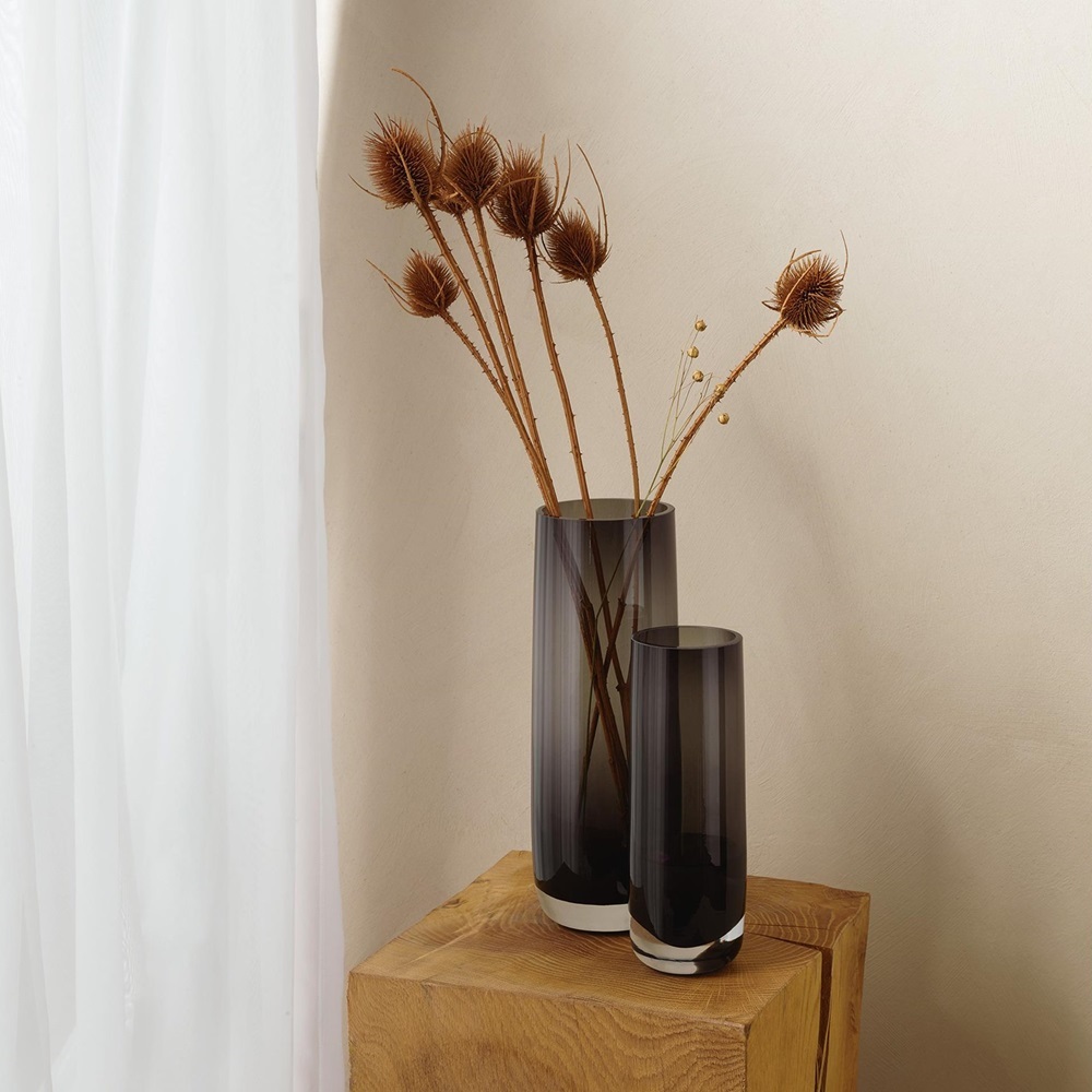 Vysoká, skleněná váza z kouřového skla od německé značky ASA Selection.